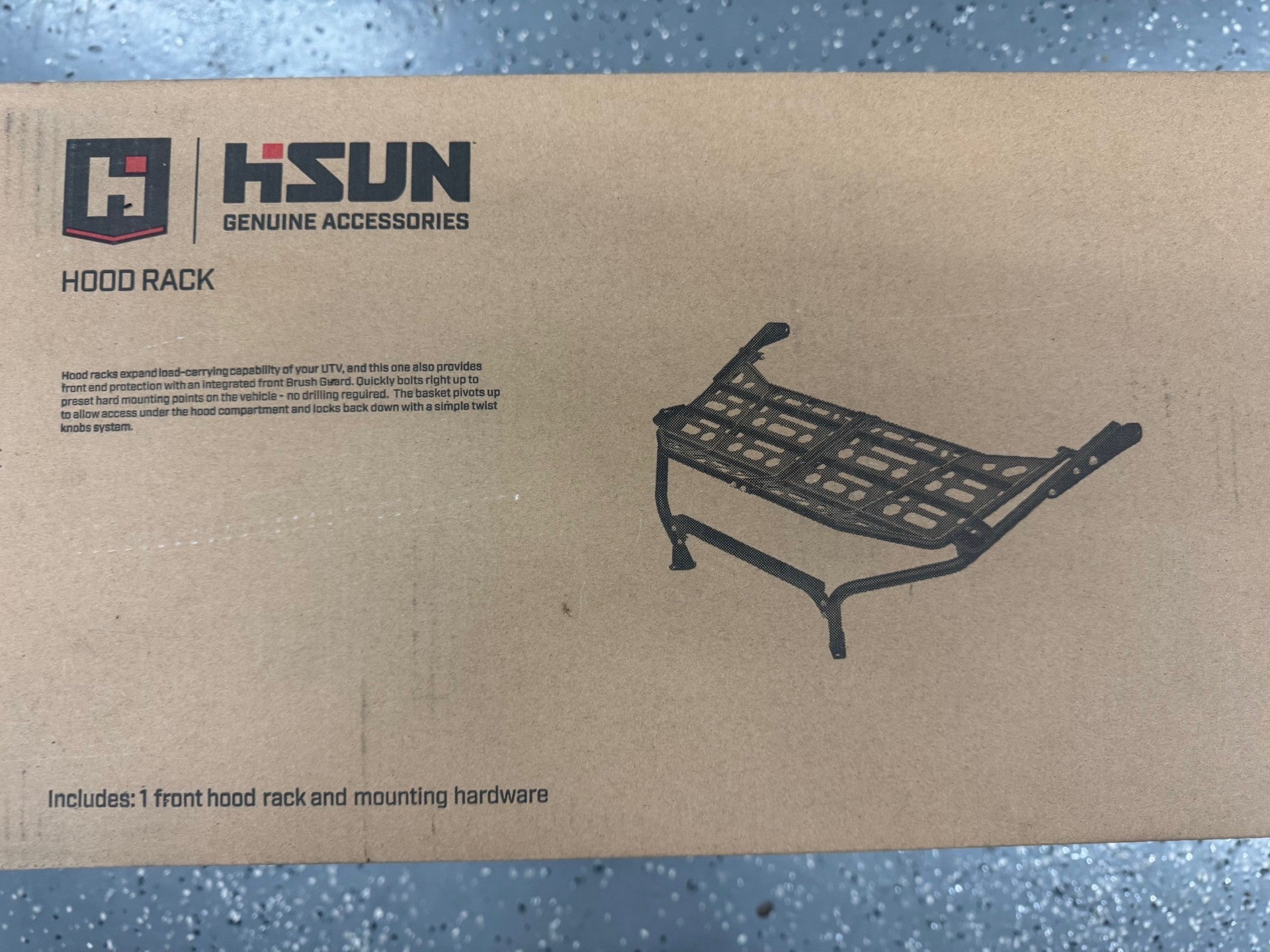This kit includes the Hood Rack, hardware to mount the hood rack, and instructions. This will fit any Hisun Stryker 550X, 750X, or 750X crew or any Axis X550, XS750, or XS750 Crew UTV.